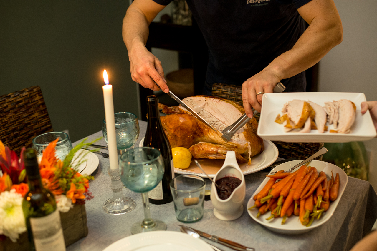 Peter finalizing the delicious turkey with even more delicious sides
